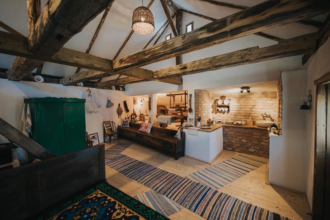 In curte noastra veti regăsi doua case, ambele restaurate intr-un stil tradițional, care ne amintește de vacantele petrecute la bunici. Prima casa are doua dormitoare cu un pat dublu fiecare, o bucatarie și baie. A doua casa are o camera cu un pat dublu, chicinetă, baie proprie și un pod unde te poți relaxa și citi o carte in tihna. In aceasta casa se afla și un mini muzeu, cu război de țesut, rodan, vartelnita, furca de tors lana, costume populare și alte piese vechi folosite de bunicile noastre.