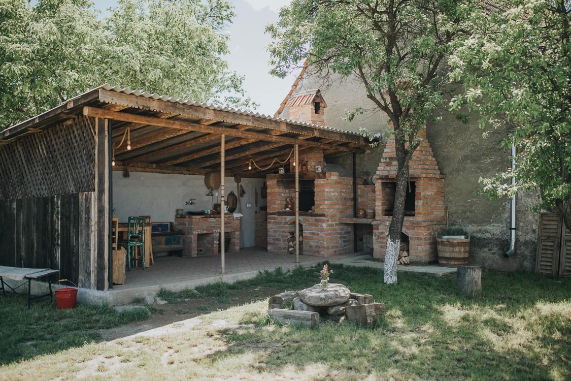 Casele au o grădină foarte generoasă cu hamac, leagăn pentru copii, o terasă unde puteți mânca, un cuptor tradițional de pâine, plita pe lemne și grătar.